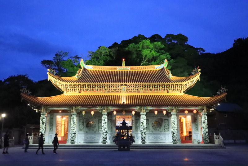 傍晚的馬祖境天后宮點燈真是美極了,在傍晚時間造訪,就能拍到寶藍色天空的天后宮點燈景色。