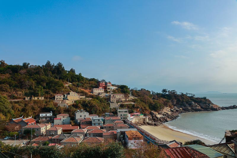 要說馬祖的異國風情,津沙聚落最具特色。這裡有金黃色的沙灘、修繕完整的閩東建築群,漫步海灘夕陽下,看看山坡上的老房子,感受閩東風情,