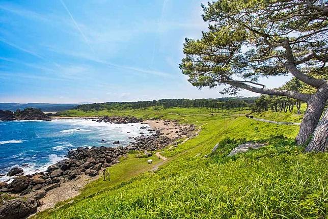 「陸奧潮風步道」位於種差海岸,是連接八戶市至福島市間,長達約700公里的自然步道,沿著此步道漫遊,不僅能將太平洋美景盡收眼底,還能觀察到有約600種植物生長,植物種類之多,日本國內也很罕見。蔚藍大海與整片翠綠的草坪所形成的色彩對比,是八戶非常具代表性的景點!