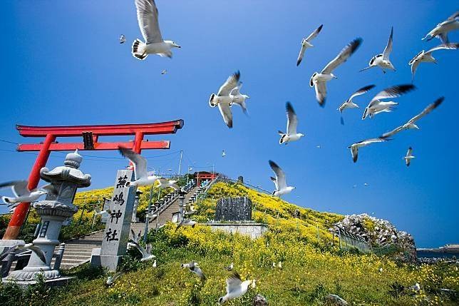 來到八戶的大家一定得知道的就是流傳在當地,有趣的「從天而降幸運說」。蕪島是日本最大的黑尾鷗繁殖地,每年的3月到8月上旬為繁殖季,約有3至4萬隻黑尾鷗會到訪此地,十分的壯觀。而又因為黑尾鷗叫的聲音很像貓,因此也被稱為海貓。有趣的是,如果遊客在這被從天而降的鳥屎擊中,會被視為幸運的象徵,若是有幸獲得此幸運,千萬別急著擦掉,只要向蕪島遊客中心出示證明,就會獲得紀念繪馬喔!上面還會標註,您是今年的第幾位幸運兒,也算是一種十分特別的紀念品。