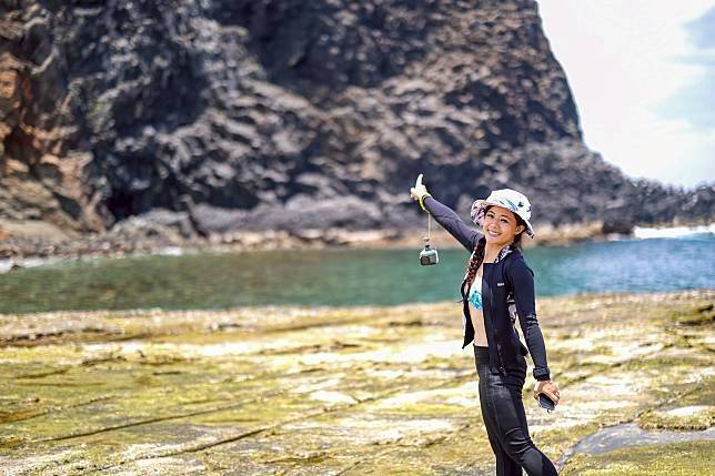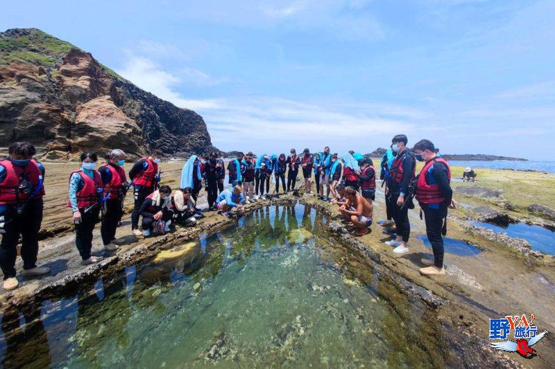 頭巾嶼退潮時才能登島,因為必須配合潮汐,每日上島時間不同。此外,還得看天氣配合,浪太大也無法靠岸。今天我們運氣不錯,大家都順利登島。在島上,教練會在水坑找尋潮間帶生物為大家解說,因為是國家公園保護區,水中生態很豐富也很精彩。