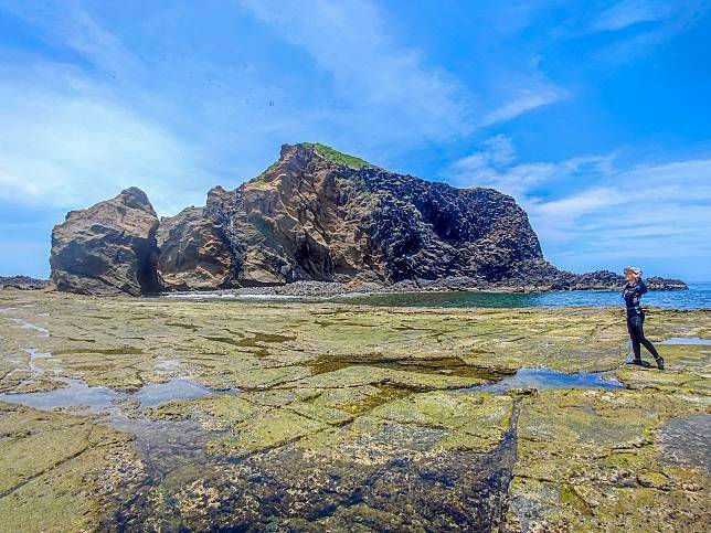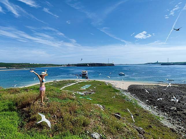 透過海上浮台接駁登島變得很容易,這個錦瓜仔礁我始終都不記得名字,唯一印象深刻的是島上有許多海鷗,我們登上山頂眺望四周,漂亮的風景搭配滿天飛舞的海鷗,讓我想起日本八戶的種差海岸。