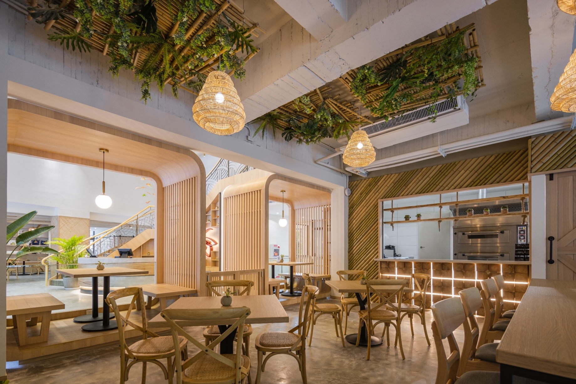 園區中的餐廳尋星廚房(Bintuhan Kitchen)由君品酒店廚藝團隊運用延平鄉在地食材結合五星飯店料理手法,推出馬告獵人燉雞佐野米、石板烤肉刈包、打拋豬佐油茫炒泡麵等美味料理,還設有無限暢飲的飲料吧和半開放式的座位區與獨立包廂。餐廳以永續概念進行空間設計,保留建物的原始毛坯天花板,並搭配桃源村所盛產的竹製裝置藝術,還使用籐製的吊燈與引進的自然日光相互搭配,在設計感十足的空間中呈現「吃在地、品當地」,未來將在2樓露台打造星空酒吧,旅人可欣賞翠綠山谷環繞,蜿蜒溪流中的滿天星斗。農特產品「好事集」小賣店,集結台東真、善、美與延平鄉專屬農實果品、布農織物、在地職人手作等,「好事集」共有26個文創品牌進駐,其中有23個品牌來自台東縣與延平鄉,如阿布斯布農傳統服飾工作室、一織獨繡等,旅人造訪溫泉園區時能一次購足。