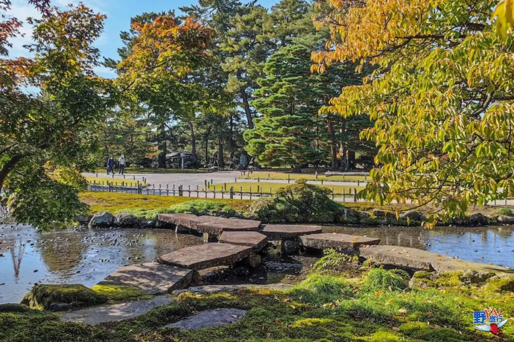 金澤兼六園(KENROKUEN)為「築山・林泉・廻遊式」庭園與水戶偕樂園、岡山後樂園並稱日本三大名園。秋天的兼六園色彩繽紛,涼爽乾冷的北國空氣、溫暖的陽光讓人心情愉快,走讀中國宋代詩人李格非所著《洛陽名園記》中所述兼具宏大與幽邃、人力與蒼古、水泉與眺望等六勝兼具之北陸名園。