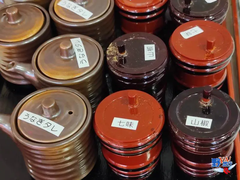 特製醬汁嚴選與鰻魚相配的釀造醬油,在賦予鰻魚濃郁風味的同時,也將糖和其他成分均衡地混合,並添加米醋來收緊整體風味,創造出一種專屬於名代宇奈獨特濃郁的味道。桌上的調味料也很多種,主要就是醬油、山椒跟七位粉,在日本似乎就沒有很辣的調味料可選。