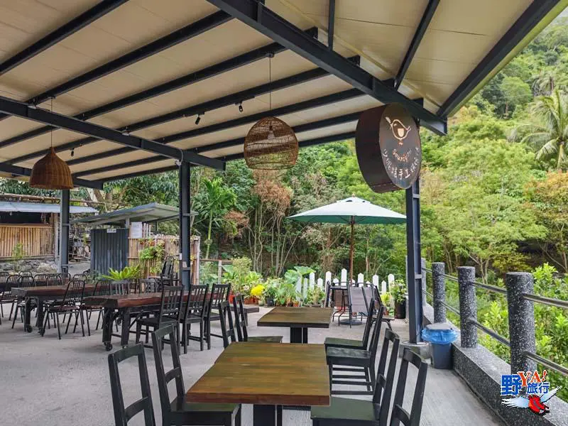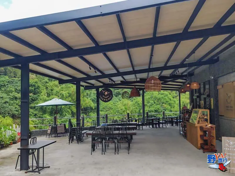 少妮媱手工烘焙坊位於歷坵部落,地勢居高臨下,挑高的屋頂建構半開放餐飲空間。台東很熱,這樣的設計可以有效阻隔熱氣,也讓顧客得以在大自然的環境中享受精緻西點。