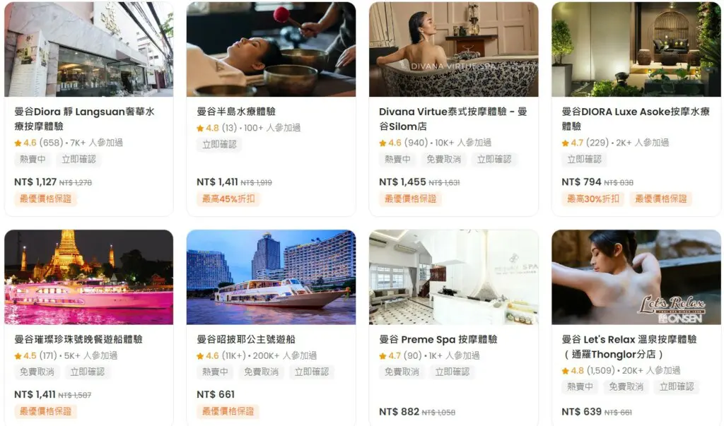 除了三大熱門路線,曼谷市區也有一些精彩行程同樣值得參加,例如大皇宮半日導覽行程、SPA泰式按摩、泰式料理教室、泰拳體驗、觀光巴士嘗美食、湄南河輪晚宴等,大家到曼谷大多是自由行,行程可以自由靈活搭配,玩出不一樣的泰國之旅。