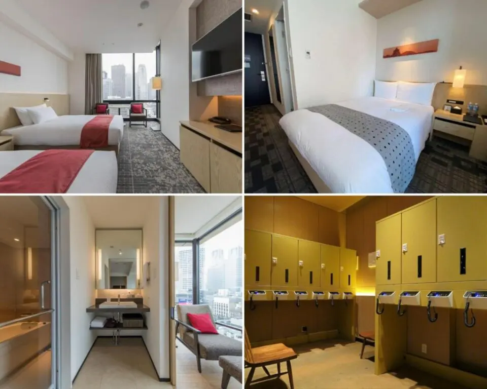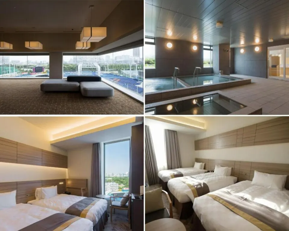 住客評價: 整體來說很新又乾淨,難得在外睡到好睡的床,空間沒有很大。lobby很大櫃台服務很好英文也很好,也有一位中文的接待人員,還可以看到棒球場。大浴池很大很舒服,有冷熱池。下面就有全家跟咖啡廳。唯一小的缺點是離地鐵有一小段路去的時候有點小斜坡推行李比較沒那麼好走。