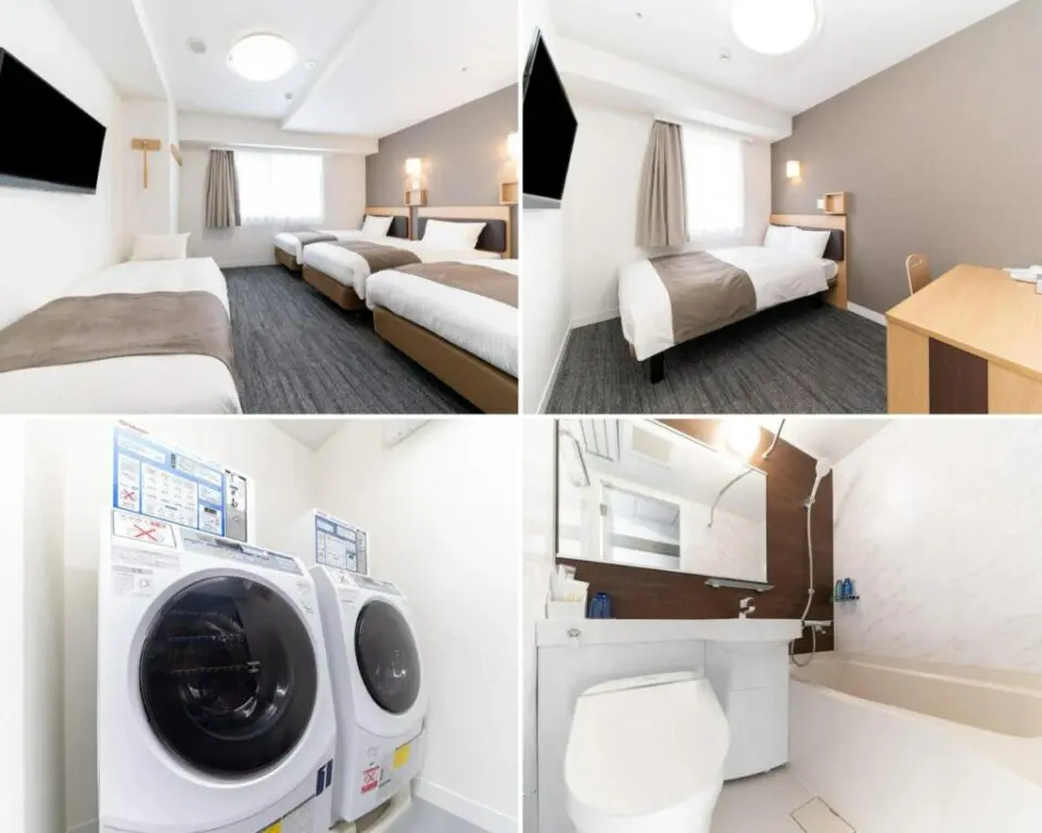 住客評價: 雙床房比想像中大很多,三樓也有提供給旅客的寄物區,有鎖大行李箱的也有小櫃子,環境整潔,床也很舒適,沒有google評論說的那麼可怕,服務人員也很專業與親切,飯店樓下就有機場巴士,離新宿站有一點點距離,不想走路樓下也有單趟100yen的巴士,直接到新宿西口