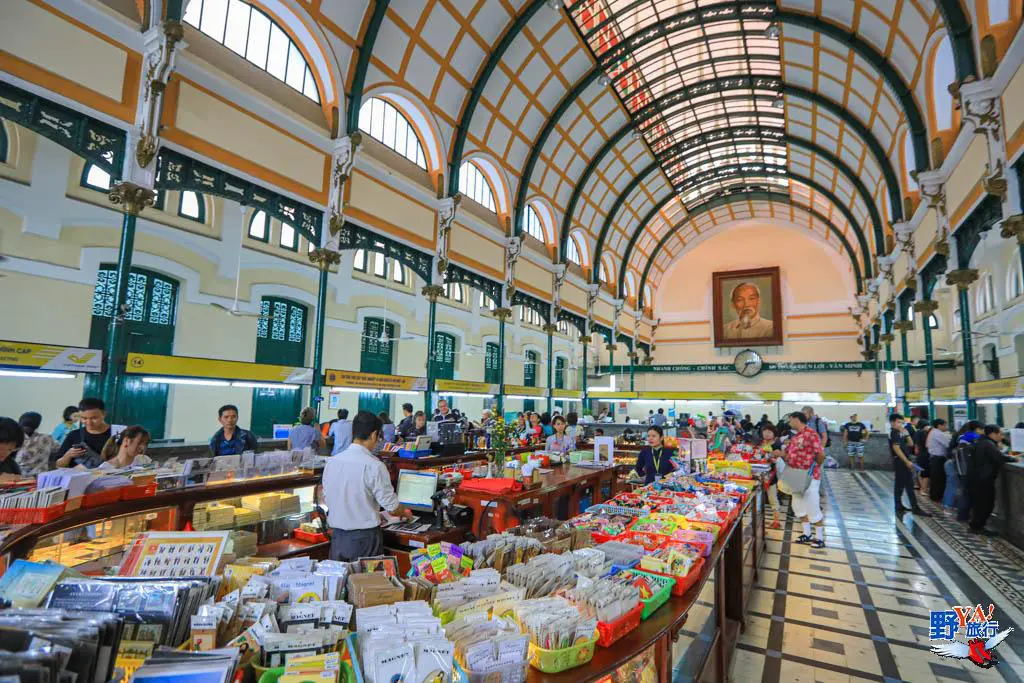 西貢中央郵局建於1891年,這座郵局是在法國統治時期興建的,鵝黃色外觀加上古典歐風造型,具有法國殖民地風格,建築外觀神似奧塞美術館,是越南最大的郵局。這是因為它是受到巴黎古老奧塞美鐵路站的啟發,不僅外觀,連內部的拱形天花板等也非常令人印象深刻。西貢郵局現在仍作為郵局為當地居民提供服務,同時也販售描繪越南國旗和風景的明信片和郵票等紀念品。