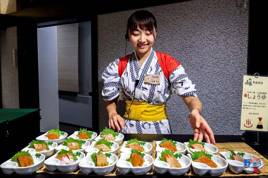 這位準備生魚片的可愛妹妹穿著青森傳統「跳人(Haneto)」服飾,這是睡魔祭典裡面一定會看到的服裝。