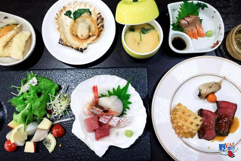日本的溫泉飯店通常包早晚餐,今晚沒有吃會席料理是直接到大餐廳吃自助餐,自助餐的食材通常沒有會席料理高檔,但勝在品項眾多,我環顧一週,青森地產的烤帆立貝、烤牛肉、蘋果燒肉、蘋果咖哩、蘋果派、蘋果汁、水果當然也少不了蘋果, 這餐吃得我大呼過癮。