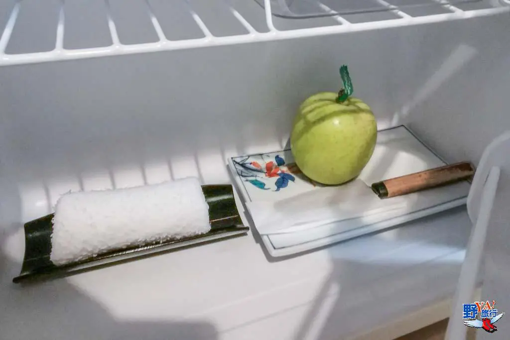 冰箱裡擺了一顆王林蘋果,這是免費提供入住房客品嘗的,當然你試吃的名產或水果一樓物產館裡面都有賣,喜歡的可以買一些名產宅配回去。