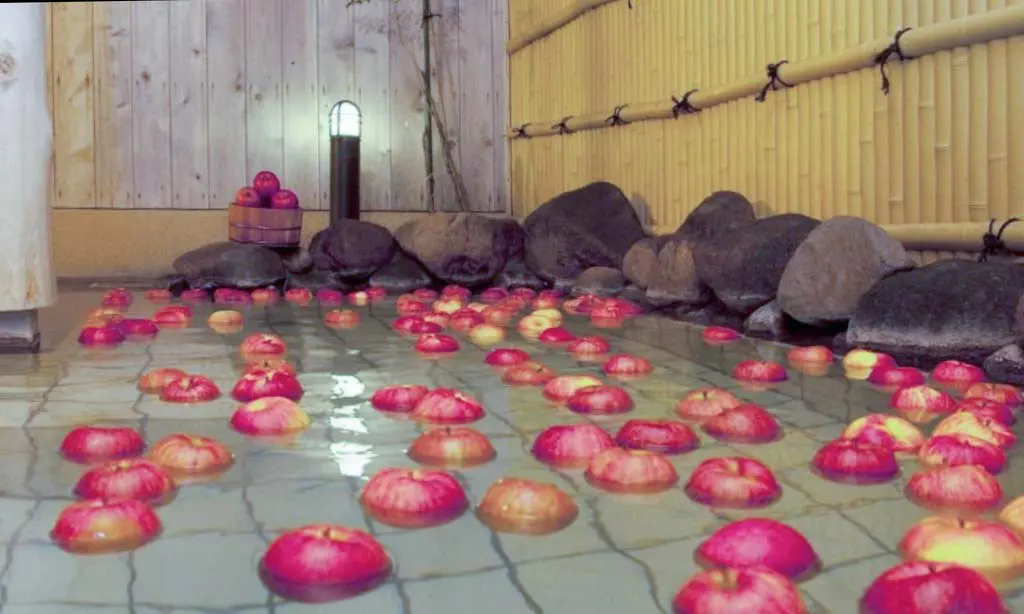 青森弘前是日本蘋果產量最高的城市,來到弘前當然大吃蘋果。位於弘南鐵道平賀站附近的南田溫泉蘋果園酒店 (Hot Spring Minamida Spa Hotel Apple Land)一年四季都提供蘋果美食還有蘋果溫泉可泡。據說蘋果溫泉的香氣與分泌的油脂有益於緩解疲勞、促進血液循環,達到滋潤肌膚美容,想要體驗最特別的泡湯經驗就來試試看。