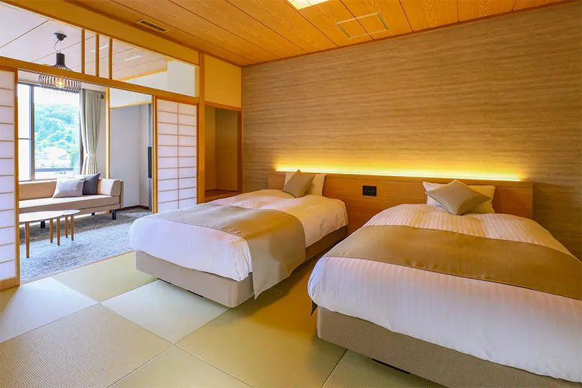 可以根據自己的喜好和目的,選擇結合了日式放鬆和西式舒適的現代日式客房、氛圍平靜的日式客房或特別客房。