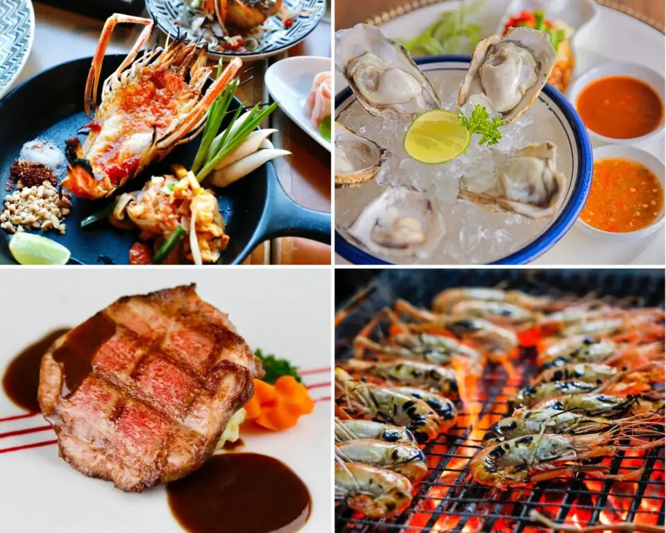 從77層彩虹雲霄觀景臺 & 84層旋轉觀景臺欣賞曼谷的城市景觀。享受美味的海鮮自助晚餐,提供超過50種菜單,包括蒸或烤的海鮮、牡蠣、壽司和刺身、牛舌、和牛牛排、和牛船面、芒果醬炸魚,還有多種甜點可選,如糯米芒果飯、冰酥、冰淇淋、新鮮水果、軟飲料、咖啡和茶