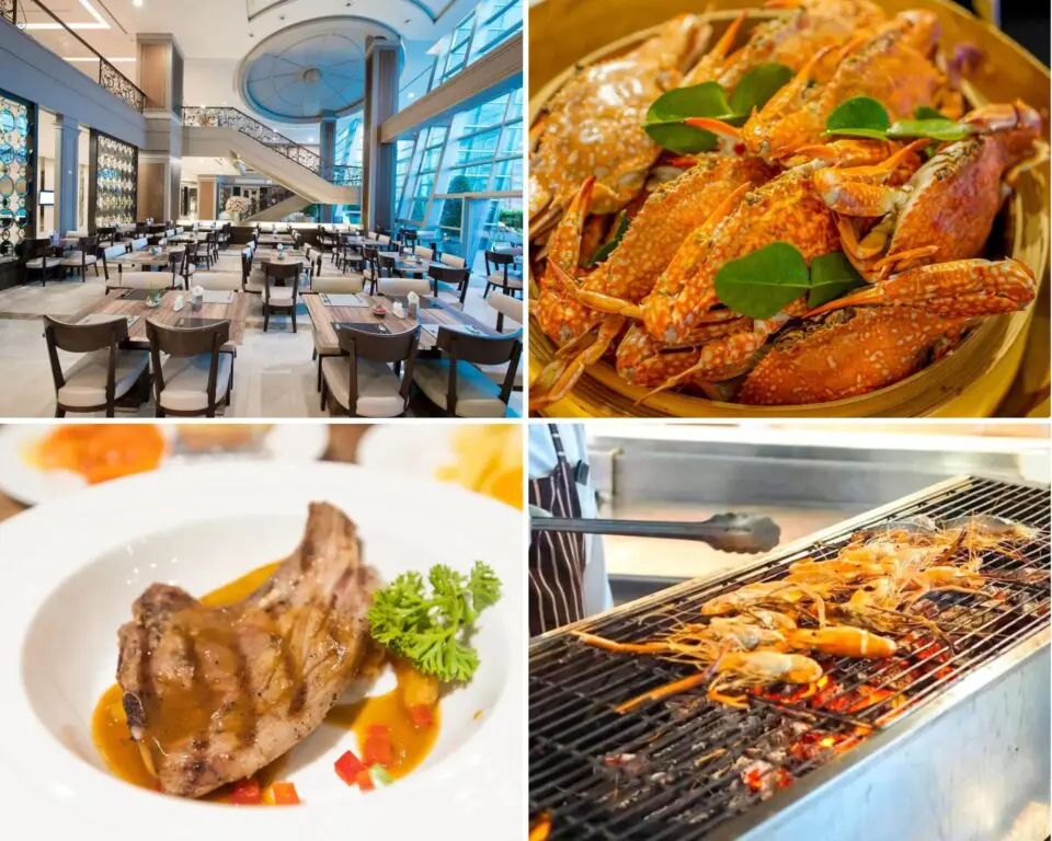 Goji Kitchen+Bar 自助餐位於曼谷皇后公園萬豪侯爵酒店(Marriott Marquis Queen’s Park),是一家以多國美食著稱的自助餐餐廳。餐廳提供豐富的菜品選擇,包括新鮮海鮮、燒烤、亞洲小吃和現做壽司。特別的是,Goji Kitchen+Bar 設有現場烹飪站,如燒烤和海鮮攤位,讓客人能享受即做即吃的美食。甜點區域也提供精緻的甜品,包括蛋糕、冰淇淋和水果。