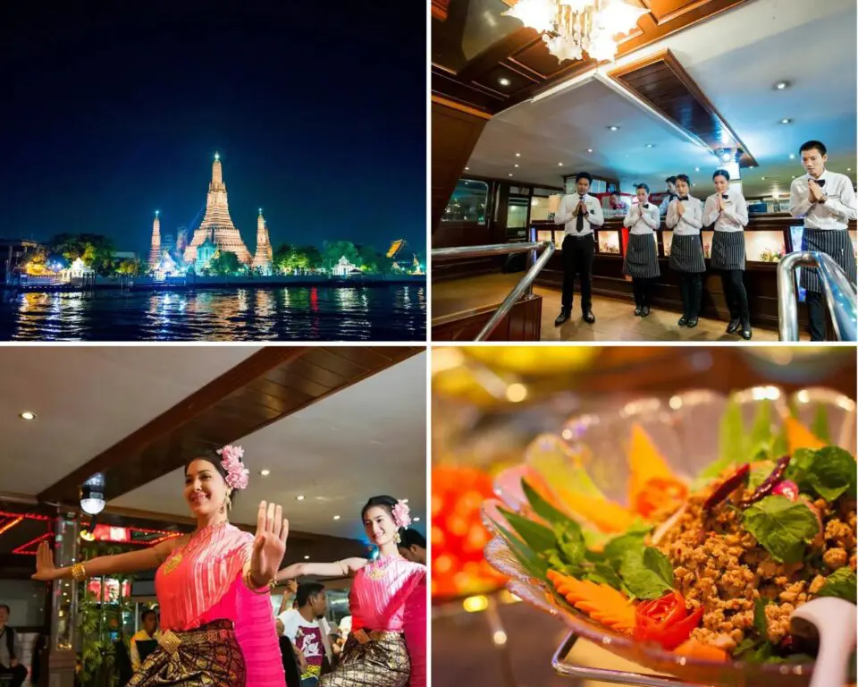 昭披耶公主號遊船(Chao Phraya Princess Cruise)是一個在曼谷湄南河上享受豪華晚餐的絕佳選擇。這艘遊船提供豐富的自助晚餐,讓您在愉悅的氛圍中品嚐泰式和國際美食。餐點包括新鮮的海鮮、燒烤、泰式佳餚以及精緻的甜點,滿足各種口味的需求。