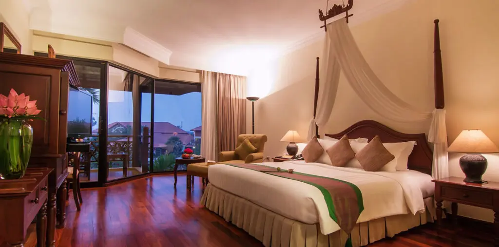 吳哥皇宮度假村(Angkor Palace Resort & Spa)位於暹粒市區,是一間老字號的優質飯店。氣派的原木造型大廳、特色餐廳、熱帶叢林景觀、兩座大型泳池、健身房、SPA等設施,是旅行吳哥住宿的優選。