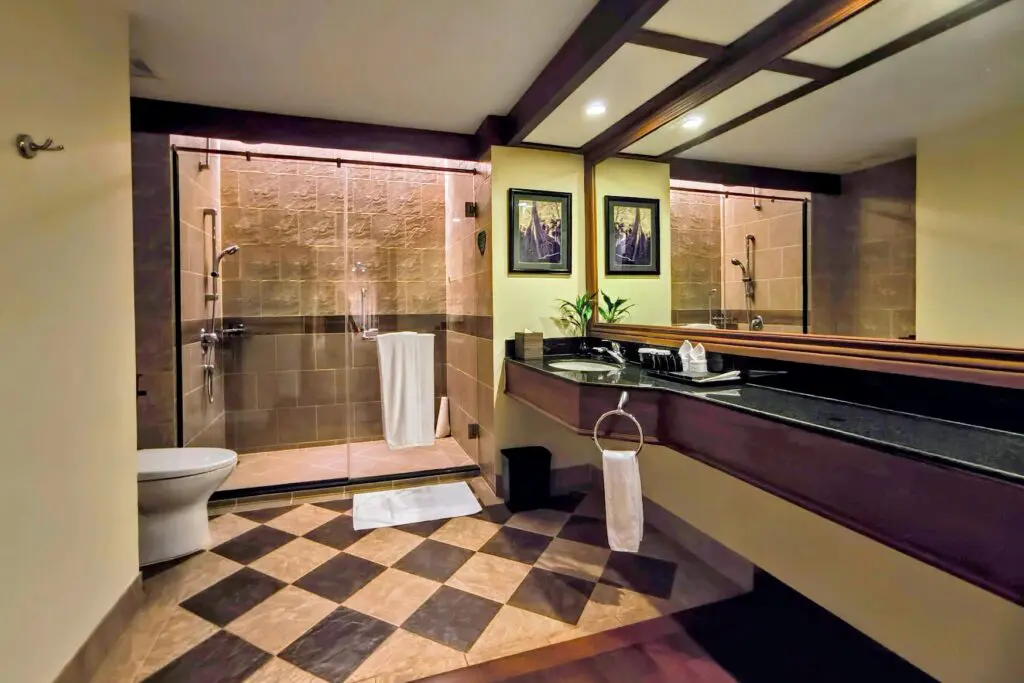 浴室空間也很大,雖然沒浴缸但水量很夠,只是吳哥很熱,這邊的浴室水溫都不算高。另外吹風機是固定式,電線有點不夠長,女孩子吹頭髮會比較辛苦。