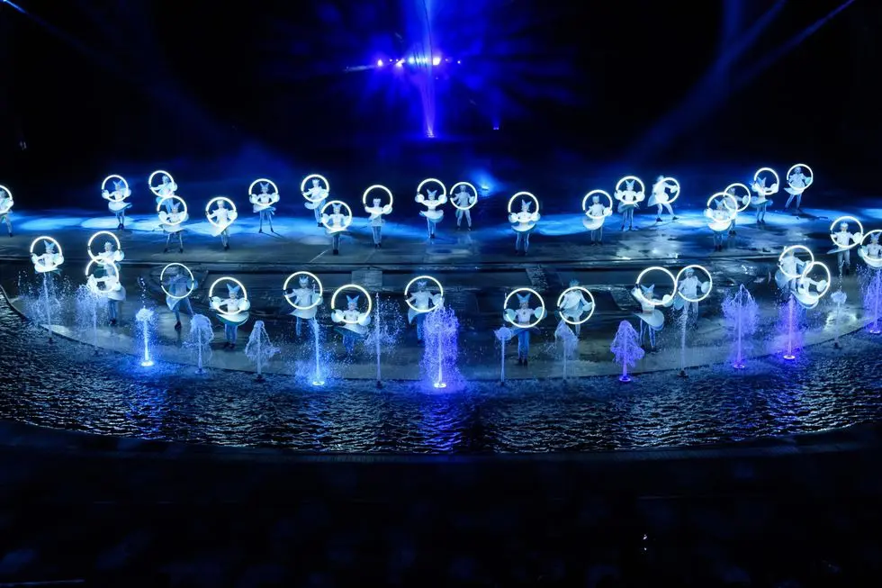 日落小鎮的另一大亮點是“Kiss of The Sea”海洋之吻水舞表演。這場表演結合了音樂、燈光和噴泉,為遊客呈現了一場視覺和聽覺的盛宴。表演場地位於小鎮的中央廣場,每晚定時舉行。隨著音樂的節奏,噴泉在空中舞動,形成各種美麗的圖案,燈光效果更是增添了表演的魅力。