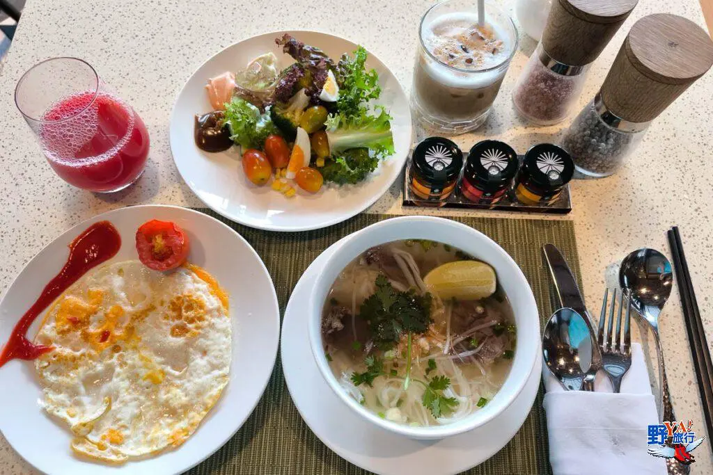 每天早晨,飯店的自助早餐都讓我充滿期待。Horizons Lobby Lounge餐廳提供豐富的早餐品項,包括新鮮的水果、越南糕點、熱菜、現做餐點和沙拉飲品等。尤其是現做的越南河粉和歐陸早餐特別受歡迎,一早來碗熱騰騰的河粉讓人身心滿足。