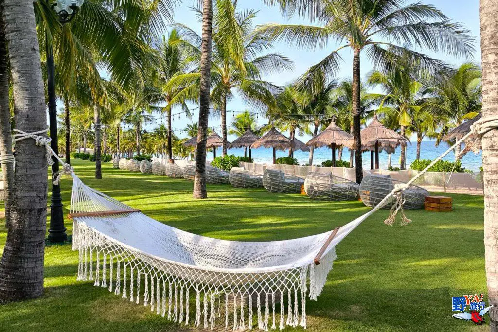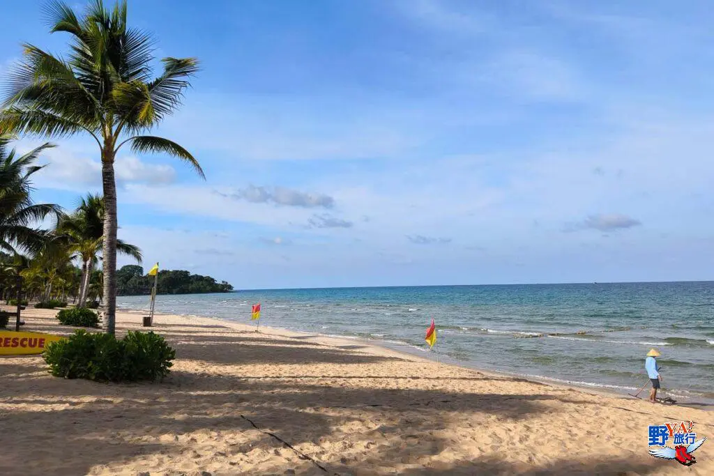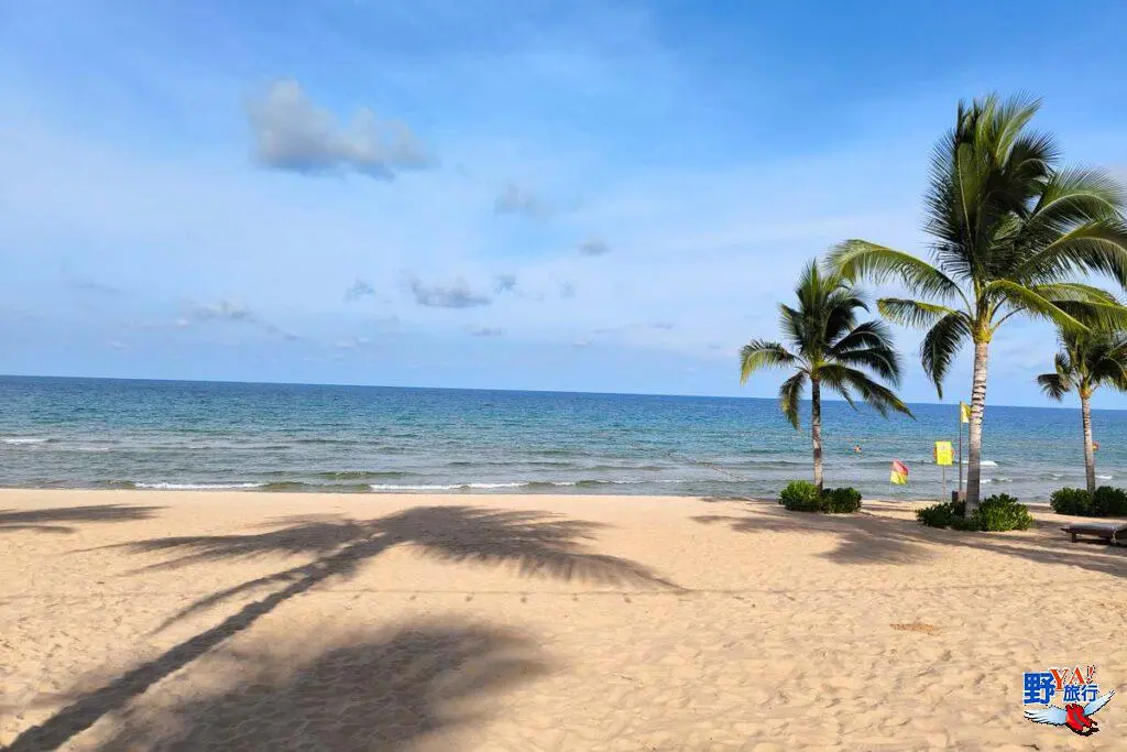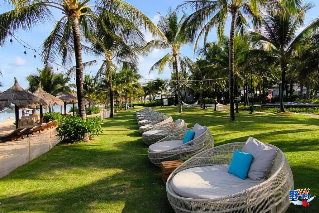 飯店擁有一片私人沙灘,沙灘上椰林搖曳,清晨的海灘氛圍寧靜,溫度也不高,漫步其間十分舒爽。這裡的沙子細膩潔白,海水清澈,你可以在躺椅曬日光浴,或者在海邊漫步踏浪,這裡水淺且風平浪靜,很多外國遊客會直接下海游泳。
