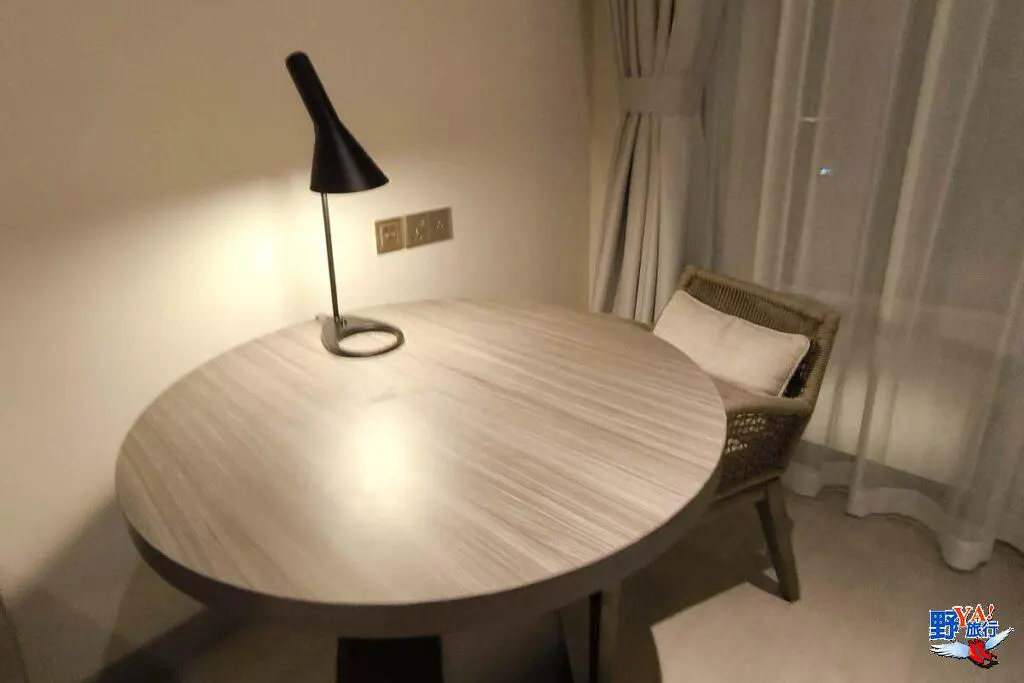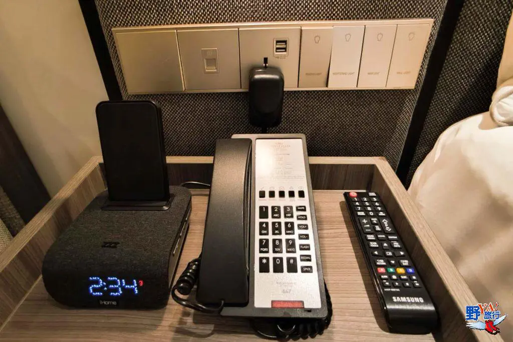 飯店為L型設計,幾乎每間房都有海景。推開房門,迎面而來的是一片寬敞明亮的空間。房間內的設計現代且舒適,大家最在意的充電設備非常齊全,床頭、書桌與小吧台都有插座,還有最新的USB街頭也很多個。