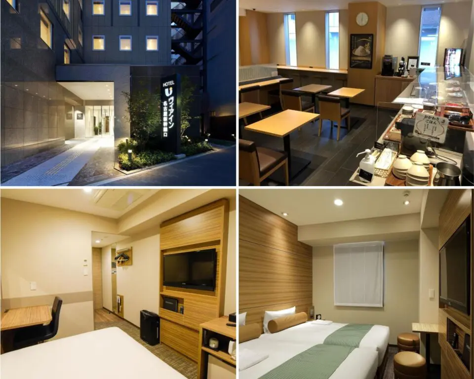 每晚一千多含早餐還送一張一樓咖啡廳的飲料兌換券,員工英文溝通順暢,也很親切。房間房間很舒適附睡衣,盥洗空間雖不大但五臟俱全。距離地鐵東山線伏見站走路約2分鐘。飯店隔壁就是Lawson 附近還有7-11非常方便,隔天要去搭機能用走的到名鐵名古屋約走10-15分鐘距離。