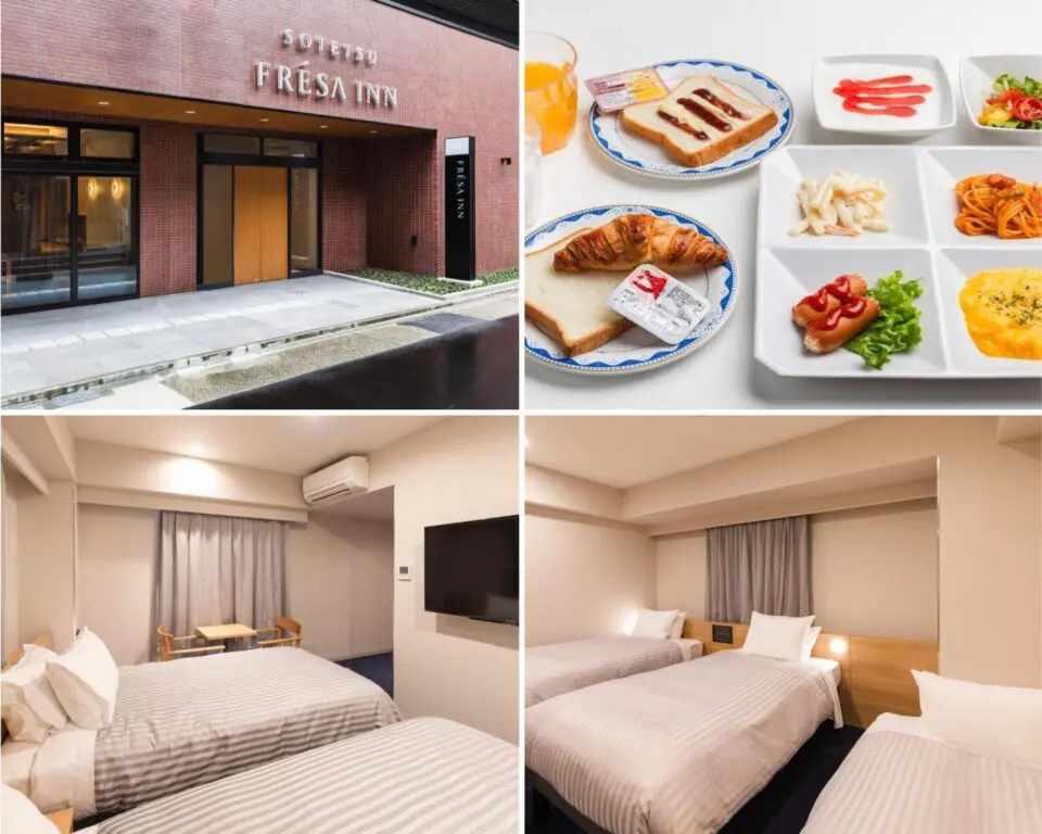 價格實惠的大房間,可以輕鬆容納2-3個大行李箱。床很軟很舒服,房間設施齊全,有很多插座和良好的照明。浴室和廁所是分開的,沒有浴缸但熱水很足。椅子和桌子很小,但仍然可用。該地區有許多購物中心,地下通道很方便。沿途有許多商店和美食餐廳。總體而言,酒店非常好,但沒有投幣式洗衣房。如果你喜歡價格實惠的大房間,我推薦住在這裡。它也靠近公交車站,非常方便。