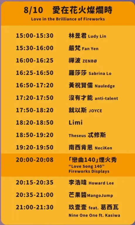 2024大稻埕夏日節最終場煙火秀是8/10日長達480秒情人節煙火秀,屆時將搭配音樂一同演出,與民眾一同度過浪漫情人節。這篇文介紹當天的交管措施、最佳觀賞地點、最佳攝影地點與當天夏日節主舞台表演卡司等資訊。