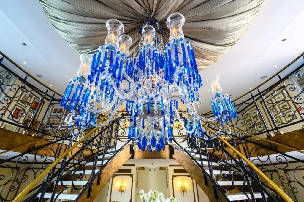 - 搭乘【寰宇精品河輪『安托瓦內特號S.S. Antoinette』】『S.S. Antoinette』以優雅大器取勝,嵌著巨大藍寶石的Strauss Baccarat吊燈懸掛在大廳上,充分顯示氣派經典的法式風格。另外,船上裝飾著19 世紀威尼斯玻璃工藝,加上許多原作的藝術品、畫作等,使得整艘船充滿藝術氣息,猶如走進中古世紀的歐洲風情。