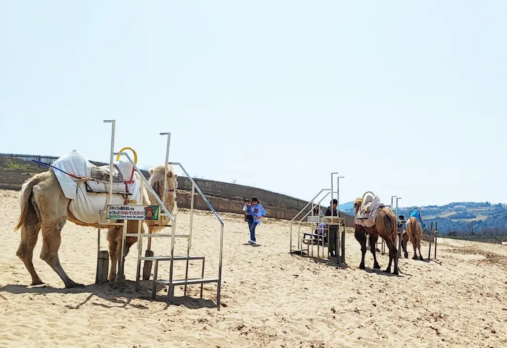 那如何欣賞『鳥取砂丘』ㄋ??天晴時風會在廣大的砂丘上割出一條條美麗的波紋,這被稱之為「風紋」。而大雨過後,逐漸乾燥的沙從斜坡宣洩而下時, 則會形成像簾幕一般的黃沙瀑布,則稱之為「沙簾」。其它還有還有幾個特殊畫面必拍的ex.馬背、綠洲...等等吸引了許多攝影愛好者前來一睹風采。「鳥取砂丘」可體驗如騎駱駝、滑沙、滑翔傘等有趣活動。