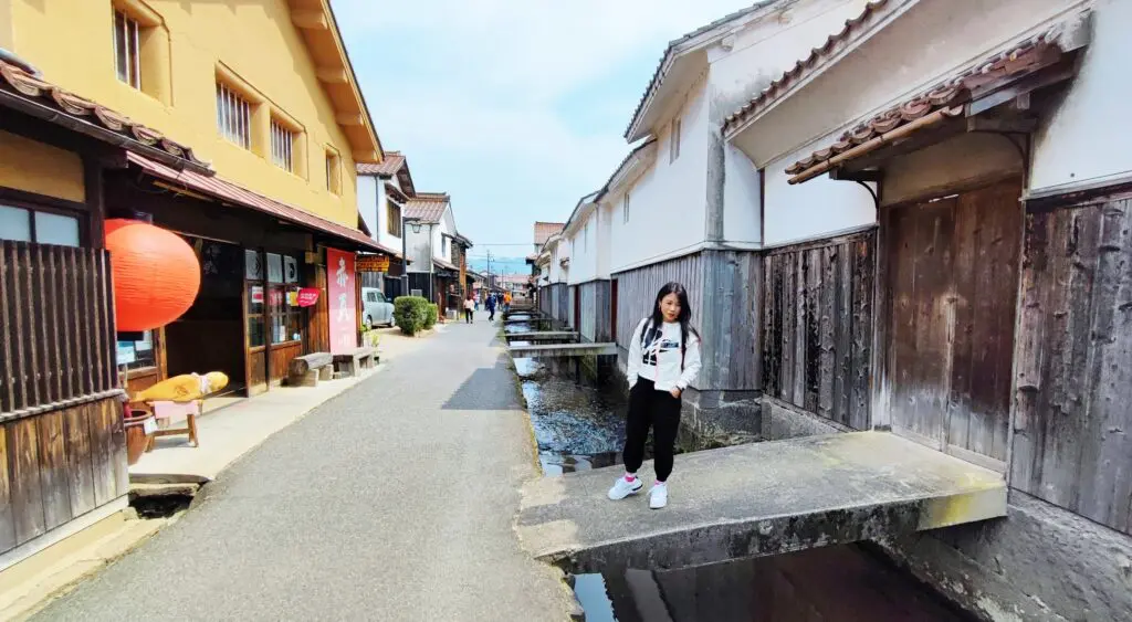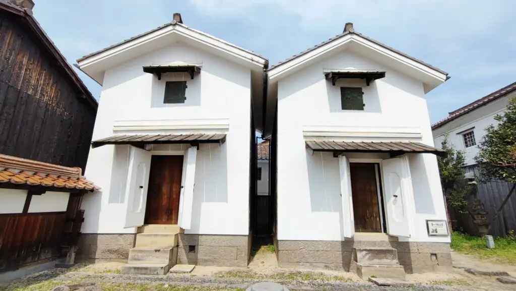 這些傳統的日式倉庫大都是在江戶時代晚期(1603-1867)到明治時代(1868-1912)之間所建造,由於建築物都塗上白漆的「土藏」設有黒色燒杉的腰板,屋頂上舖著具耐寒功能的紅色石州瓦,故又被稱之為「白壁 」。長約400公尺的「白壁土藏群」以前是醬油釀造廠或釀酒廠,現在很多都改為藝廊、茶葉店…等等,一棟棟美麗的小屋被數座小石橋橫越的錦鯉水道串連著,迷人的景色、寧靜的社區非常適合漫步。