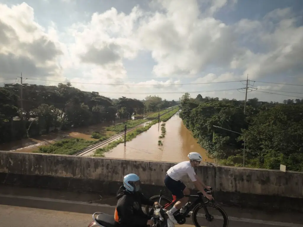 從清邁往清萊的主要道路有多處淹水,遊覽車司機很有經驗地將的行李移置在後方座位區,因為下方行李區有可能水淹導致行李進水。當地司機對於路況掌握相當有經驗,也讓我們更安心。