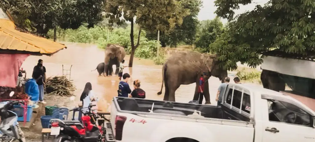 大象自然公園受災:清邁的大象自然公園也遭受了嚴重的洪水影響,園方緊急撤離了上百隻大象,但仍有2隻大象不幸喪生,幾十隻大象失蹤。這次的洪災導致我們部分行程不得不更動,本來要去大象園看表演,卻也因為淹水道路不通,當然大象也全部移置到高處,原本安排的大象表演、象園午餐只能被迫變更。