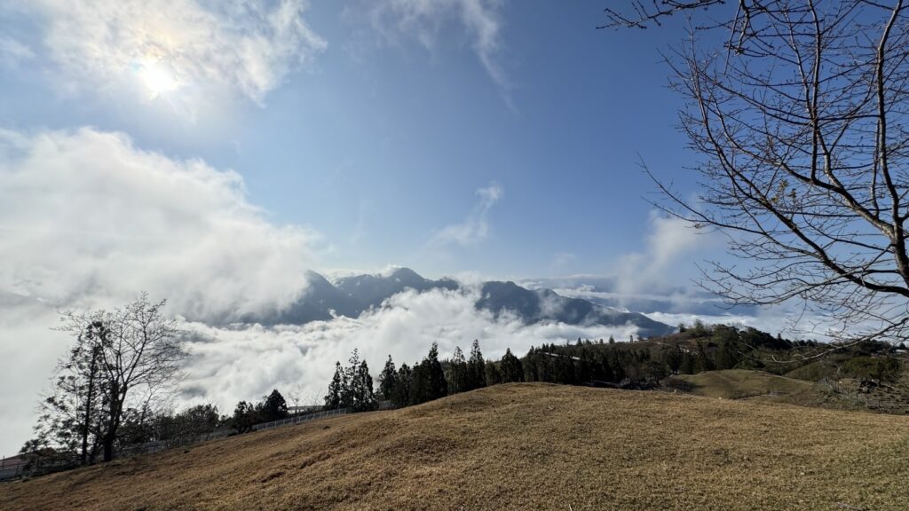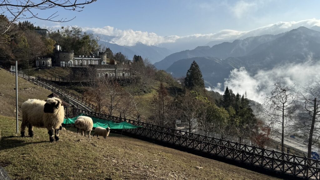 因為高海拔與寒流的影響,清境地區的溫度大約在10度上下,陽光灑落提高不少體感溫度,給人暖洋洋的感覺,是獨特的冬日幸福感受,從清境農場遠眺合歡、奇萊、能高越嶺古道的中央山脈名山,觸目所及盡是靄靄白雪,讓人彷彿置身北國,完全療癒了身心靈。