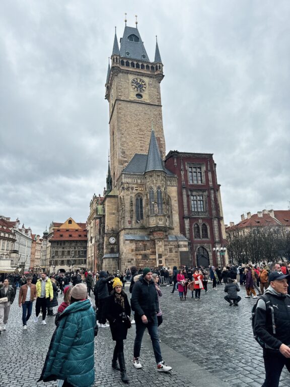 a.舊市政廳於1364 年完工,是布拉格最重要的古蹟之。高69.5M的哥德式高塔上有天文古鐘,9-21點的整點,12個使徒,拿著他們的代表聖物輪流從窗邊出現。
