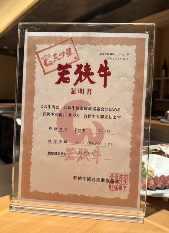 此次「美食福井會席」套餐,每客3,500元,匠心呈現十道精緻佳餚,詮釋日本料理的極致工藝。當中特別引人矚目的,是首次出口至台灣、來自福井縣的極品「若狹牛」。此牛種年產僅600頭,肉質細緻,油花分布均勻,並帶有天然甘甜,尤以榮獲「三星之冠」的若狹牛更顯珍稀,唯有通過嚴格標準的頂級牛隻方能獲此殊榮。HAYASE日本料理特選香氣濃郁的腰臀部,以精湛手藝巧妙演繹,為饕客獻上和牛饗宴。