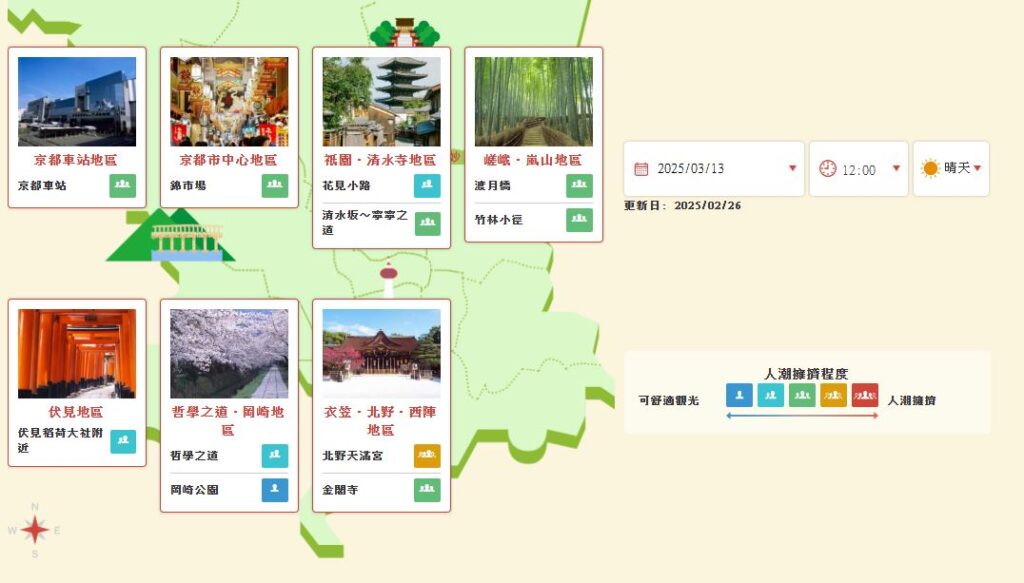 【京都觀光人潮擁擠程度預測的即時影像】