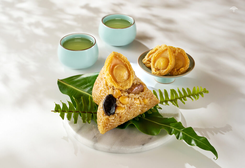 福容大飯店嚴選六款各具特色的美味粽子,由主廚精心選用頂級食材及豐富餡料層層堆疊,讓每一口都充滿驚喜與滿足。「頂級臻饌鮑魚粽」以整顆鮮嫩鮑魚為主角,搭配豬胛心、香菇、雪蓮子與金鉤蝦,海陸交融,口感層次分明。
