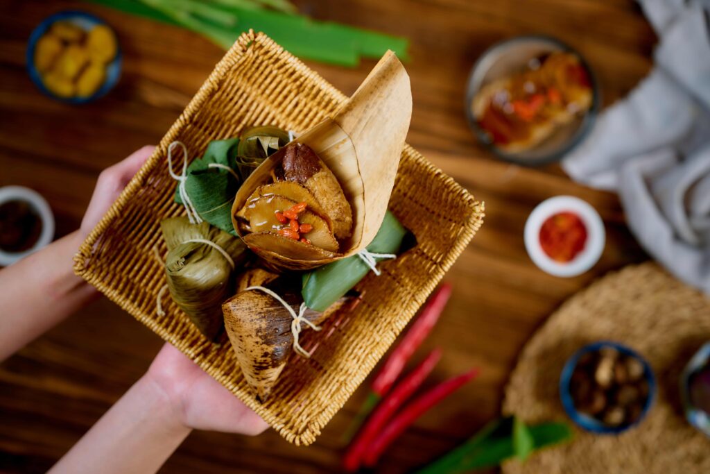 台南晶英此次推出的五款風味粽皆由中點主廚吳睿桓親自監製,全新創意口味驚喜呈現東南亞料理精髓,首先是取材自印、馬兩地國民美食的「檳城仁當牛肉粽」,以紅蔥頭、黃薑、南薑、蒜頭、咖哩粉、香茅等多種辛香料加入椰漿熬煮醬汁,加入口感柔嫩的牛臉頰肉細火慢滷入味,與米飯搭配層次濃郁豐富。