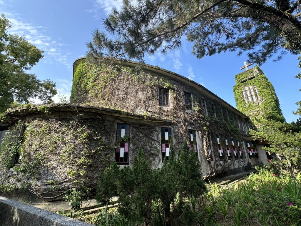 隨著歲月的流逝,現今教堂外牆佈滿茂盛的藤蔓植物,更添美感特色,教堂內部陳設簡單莊嚴,彩繪玻璃窗在陽光照射下顯得格外美麗,這座融合東方傳統與西方宗教元素的教堂,不僅成為打卡熱點,亦是朝聖者必訪的心靈歸宿,時光交織的信仰之舟。