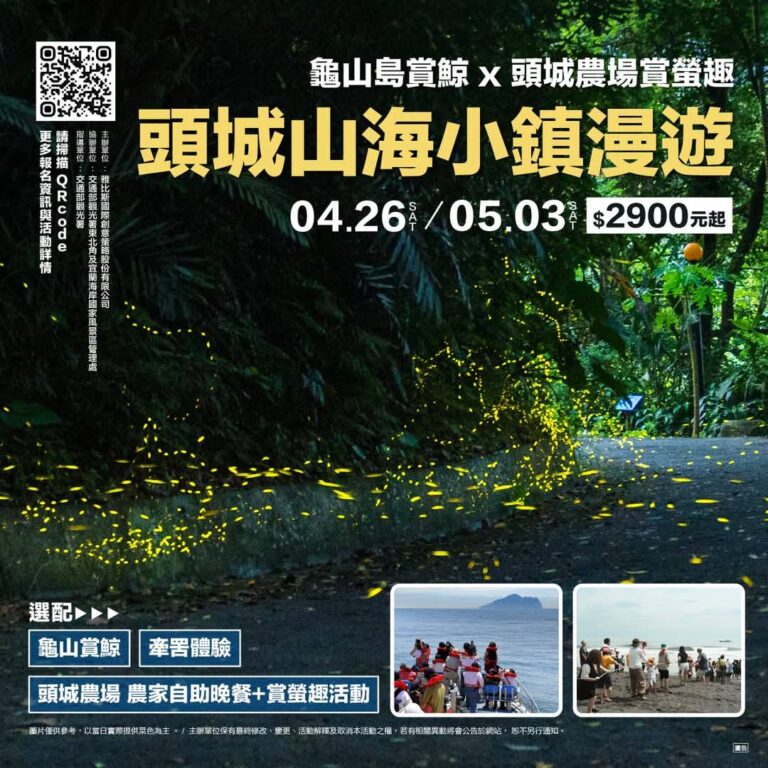 搭配龜山島開放登島,東北角管理處結合旅行社串聯轄區GSTC業者及五漁村特色商家,推出兼具永續及生態遊程,以龜山島賞鯨為主軸,搭配「生態賞螢趣」及「尋味頭城古街風華」等規劃遊程。