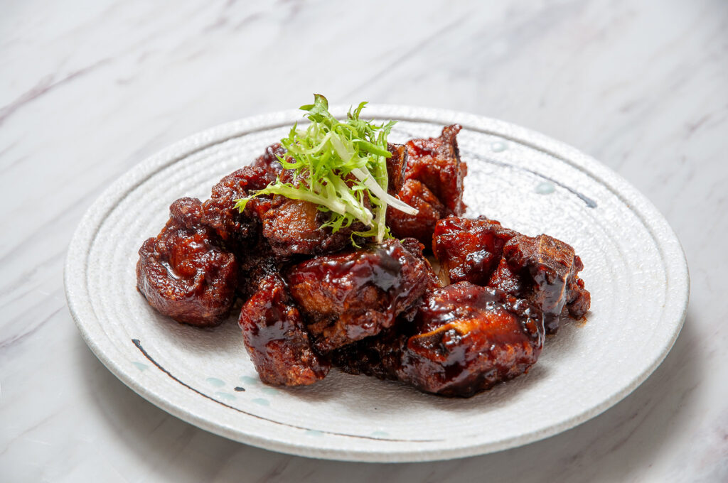 新菜單除了保留三大經典美饌「招牌蒜香黑鑽雞」、「凱撒招牌冠軍豬腳」、「凱撒桃木片皮鴨四吃」,也推出多道話題新作,展現創意與地域風味融合的巧思:「古坑咖啡排骨」以雲林古坑冰滴咖啡入菜,搭配特製醬料快火翻炒,焦糖香氣與咖啡微苦甘甜交錯揉合,風味濃郁而獨具層次。