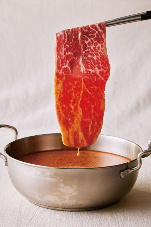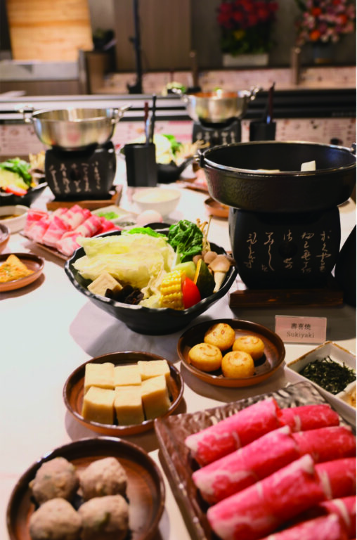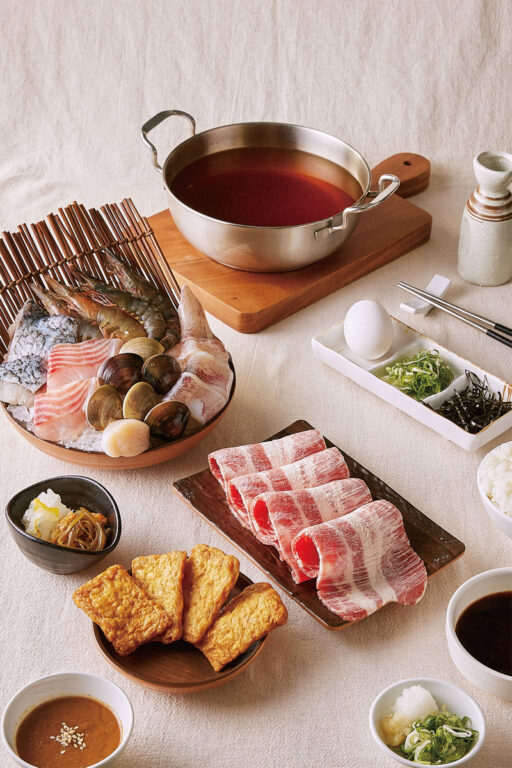 而「和十Shabu」更有許多與眾不同的鍋物吃法。如點選清爽的「 Shabu Shabu」,可保留鍋中少量湯汁,開大火將白飯煮至米粒鬆軟後熄火,加入雞蛋快速攪拌,最後撒上青蔥與海苔,完成一碗暖心道地的「日式雜炊」。而醬汁風味特殊的「壽喜燒」可加入少量湯汁,煮至烏龍麵軟Q入味,接著打入蛋液、關火拌炒,撒上柴魚片與海苔,即可擁有一鍋「日式炒烏龍」。口味濃郁的辣味噌鍋則可以搭配特製的麵條煮成一碗拉麵。拉麵由內場煮熟後出餐,只需將熱騰騰的辣味增湯底倒入碗中,加入經典的辣味增肉燥,撒上蔥花與海苔,放上糖沁蛋,最後滴上蜜汁醬及特製辣油,一碗濃郁過癮的「日式辣味增拉麵」即可享用。