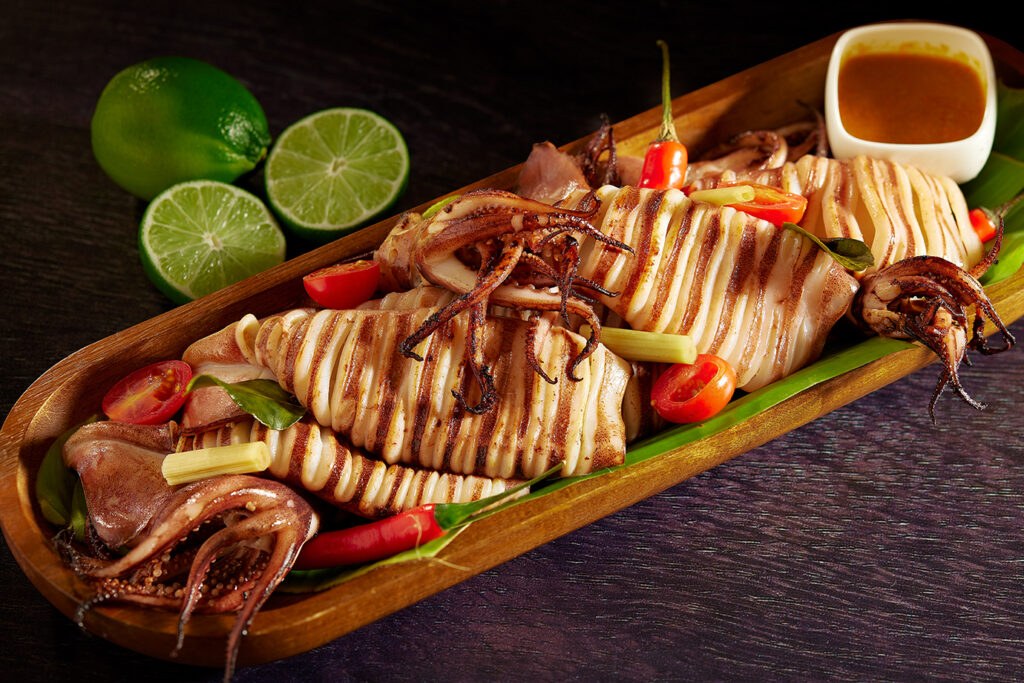 前菜區即展現濃厚泰式風情:酸辣開胃的「瀑布松阪豬」經香料醃製、大火炙烤,搭配檸檬汁與香菜提味,鮮美開胃;「泰式柚香涼拌雞絲」融合新鮮柚子果香與細嫩雞絲,清新爽口;「涼拌海鮮沙拉」以蝦仁、花枝、淡菜佐酸辣醬汁,鮮香四溢;「泰式生春捲」內餡為新鮮蔬菜與鮮蝦,清爽不膩;經典「青木瓜沙拉」酸甜爽辣,堪稱泰國街邊小吃的代表作。