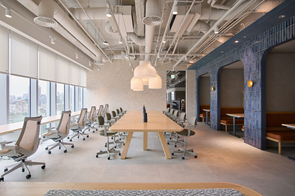 另外,導入融合東西美學的ITOKI 特色茶几、沙發及高腳椅,為公共區域增添設計感與創意。