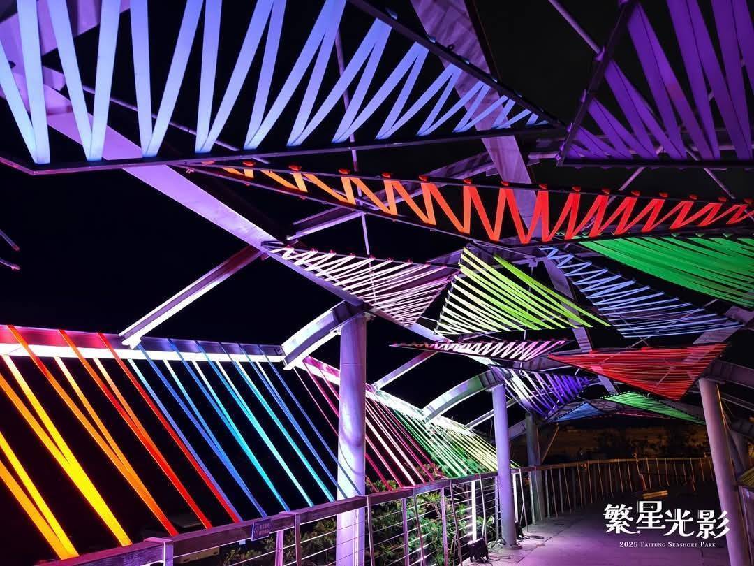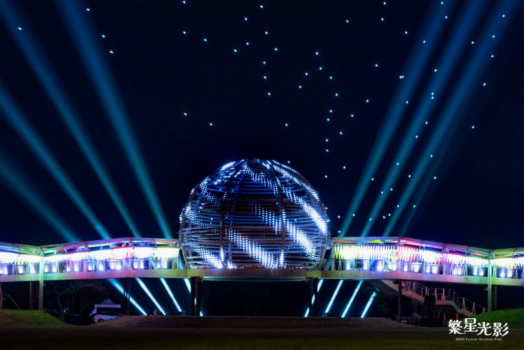 臺東縣政府推出品牌活動-「台東最美星空」,近日再傳捷報, 由臺東縣政府交通及觀光發展處策劃的「2025繁星光影」, 結合空間設計、燈光藝術與科技創新, 成功將臺東海濱公園原有的國際地標球體結構重新活化, 蛻變為一座宛如宇宙星球降臨人間的夢幻場域。 展覽不僅打破傳統地景裝置的呈現方式, 更透過視覺藝術創作轉化成地方生命力, 展現出臺東在地文化復興與藝術再生的堅韌精神。