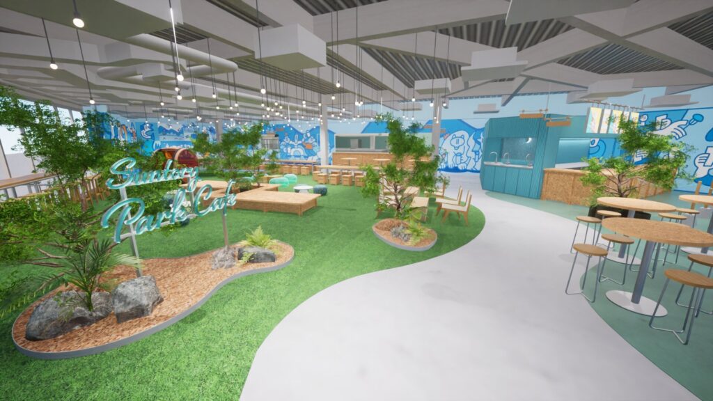 左:Suntory Park Cafe咖啡廳/ 中、右:SUIKUU水空餐廳)